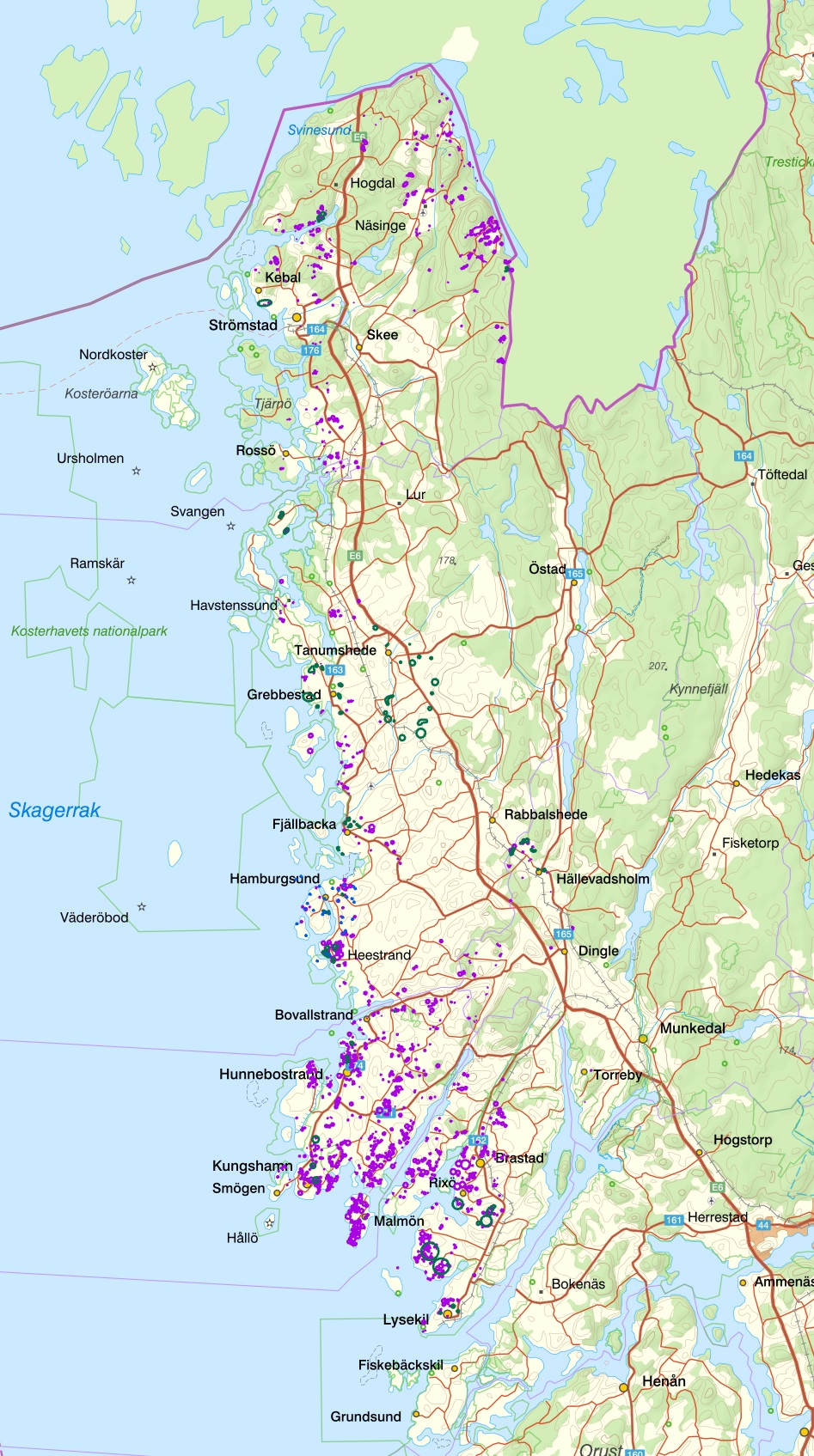Här finns även ett eget lager som presenterar de lämningar efter stenbrytning som Kulturlandskapet identifierat i sitt projekt Den bohuslänska granitindustrin – kunskapsuppbyggnad och planeringsunderlag.